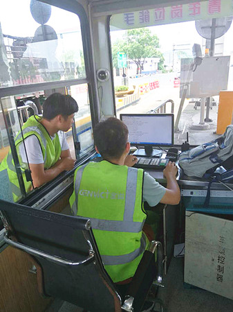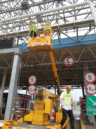 圖為工作人員對(duì)天線聯(lián)調(diào)測試 8日9日中午1點(diǎn)30左右,正是一天中最熱的時(shí)間,天線廠家?guī)еO(shè)備來到收費(fèi)所,中心人員便放棄午休時(shí)間和早已在外廣場待命登高車駕駛員一起,協(xié)助廠家技術(shù)人員更換離地面6米余高的RSU天線盒。由于天線盒上方?jīng)]有安裝任何遮擋設(shè)備,長年日曬雨淋導(dǎo)致上方固定螺栓都出現(xiàn)生銹打滑,拆卸難度徒增,不到十分鐘,我們工作人員便濕透了全身,但大家還是咬咬牙,為盡快恢復(fù)車道正常行駛,保證車道便捷暢通而繼續(xù)埋頭苦干。在經(jīng)過近一個(gè)小時(shí)努力,終于將新的天線盒成功安裝,最后經(jīng)過聯(lián)調(diào)測試,恢復(fù)了車輛正常讀卡。 通過對(duì)新天線盒“上任”后數(shù)天觀察,發(fā)現(xiàn)該ETC車道讀卡失敗率明顯下降,車輛通過率達(dá)到了99.7%。如此一來,大大提高了車輛通行效率,距打造“智慧高速”目標(biāo)又邁進(jìn)了一步。