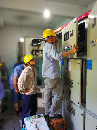 15日一早,廠家和電力公司技術(shù)人員帶著相應(yīng)設(shè)備和工具,先切斷南北配電房主電纜,改為發(fā)電機(jī)供電,同時(shí)為了做到有備無患,中心還請(qǐng)清障施救人員幫忙將移動(dòng)發(fā)電機(jī)拉至隧道外廣場(chǎng)備用,以保證隧道正常照明及運(yùn)營。配電房內(nèi),20多名技術(shù)人員被分成了組裝組、接線組以及安裝組,大家各司其職、各盡其責(zé),現(xiàn)場(chǎng)一派忙碌的景象。為不影響隧道內(nèi)正常用電,配電房配置的空調(diào)成了擺設(shè),在這悶熱的房間里,大家僅靠一臺(tái)電扇一干就是六七個(gè)小時(shí),身上的衣服濕了干,干了又濕,但大家毫無怨言,渴了就喝口水,累了就坐地上休息幾分鐘后又立馬投入到緊張工作中。最終,在15點(diǎn)50左右,所有安裝設(shè)備經(jīng)過聯(lián)調(diào)測(cè)試一次通過,隧道又恢復(fù)了正常市電供電。
