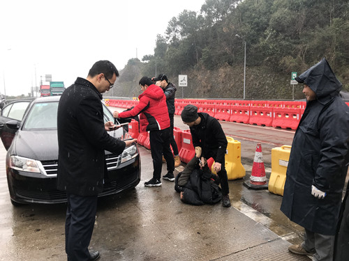 抓捕過(guò)后,因?yàn)檎谙卵?,該站工作人員紛紛將自己的雨傘借給大雪中還在現(xiàn)場(chǎng)等候支援的辦案人員,并為在辦案過(guò)程中受傷的英雄們送上創(chuàng)口貼、消毒水、棉花球等外傷應(yīng)急藥物。中午12:00左右,當(dāng)警方把犯罪嫌疑人分別押解到警車(chē)上后,帶隊(duì)民警連聲感謝收費(fèi)人員的積極配合與關(guān)心。 事后據(jù)悉,警方按照事先制定的周密抓捕方案從杭州一路尾隨犯罪嫌疑人跟蹤至此,這次能成功抓捕,得益于天時(shí)地利人和,使得犯罪嫌疑人無(wú)路可逃。 陳瑩
