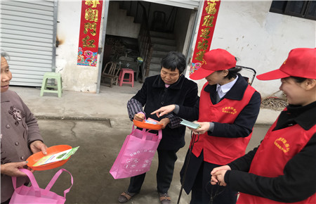 圖為志愿者派發(fā)宣傳冊