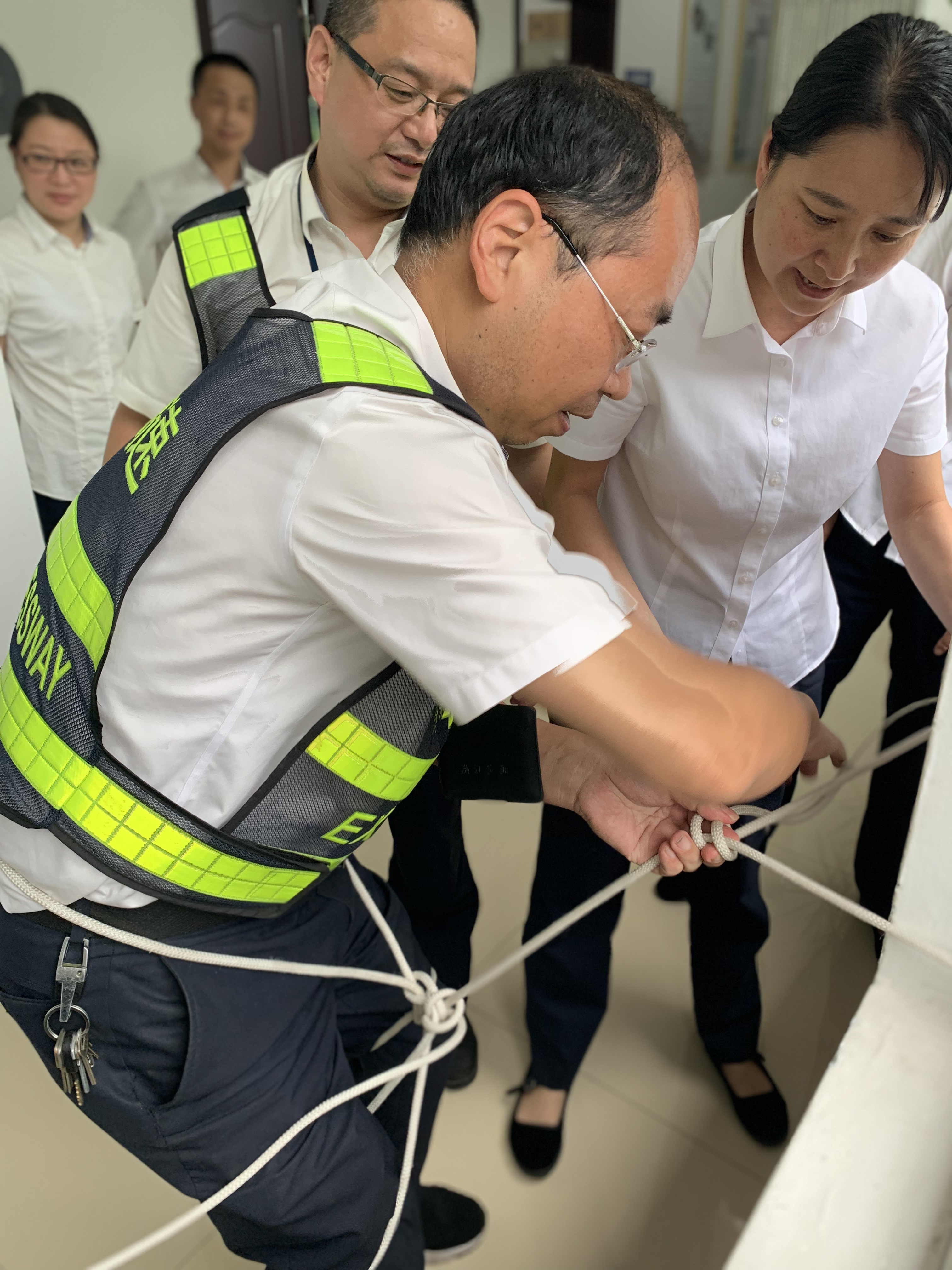 “繩”采飛揚(yáng) ——記臨海南收費(fèi)所逃生繩技能大比武活動(dòng) “加油、加油!” “快快快,繩子給我,輪到我啦!” “不對不對,繞三圈從中間穿過去!” 臨海南收費(fèi)所辦公樓二樓樓道上,不時(shí)傳出陣陣掌聲、吶喊聲,7月15日至7月17日,該所以各收費(fèi)班組為參賽單位,以“增強(qiáng)消防安全意識,提升應(yīng)急逃生技能”為主題,開展逃生繩技能大比武活動(dòng)。