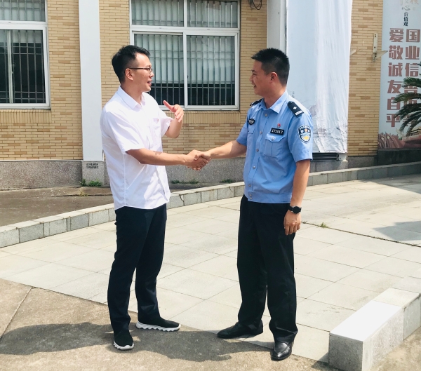 炎炎夏日送清涼 警民合作一家親 7月15日上午,臨海南收費(fèi)所所長孫明偉帶隊(duì)到沿江派出所送清涼,向堅(jiān)守一線的民警們送上誠摯的關(guān)懷,感謝他們對臨海南高速公路所做的貢獻(xiàn)。
