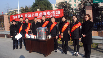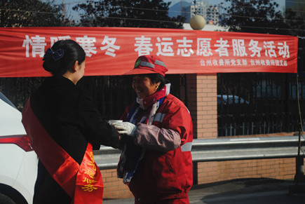 臺州收費(fèi)所開展“情暖寒冬”春運(yùn)志愿者服務(wù)活動 1月22日上午,臺州收費(fèi)所開展了“情暖寒冬” 春運(yùn)志愿者服務(wù)活動。該所黨支部、團(tuán)支部成員共計(jì)10余人參加此次活動。