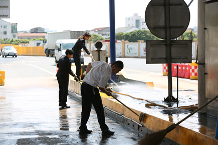 為積極開展“作風建設年”活動,4月27日上午,臺州收費所調動全所員工主動性,組織行政人員、班長、非當班黨員、團員共19人,對收費區(qū)域環(huán)境衛(wèi)生進行全方位整治。