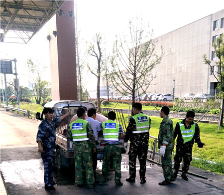 這輛從杜橋入口、沒有安裝防護(hù)網(wǎng),只在車廂兩側(cè)裝了防護(hù)欄的五菱小貨車,運載著數(shù)十頭豬,在臺州收費所享受綠農(nóng)車免費放行后,正要啟動車輛離開時,一頭豬趁機從車廂內(nèi)奮力一跳,跳到了車道上。當(dāng)班副班長何丹燕第一時間發(fā)現(xiàn),急忙向駛離的小貨車大喊 “師傅,豬掉了,豬掉了”。