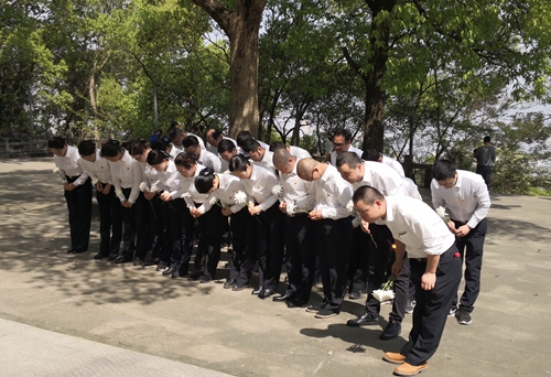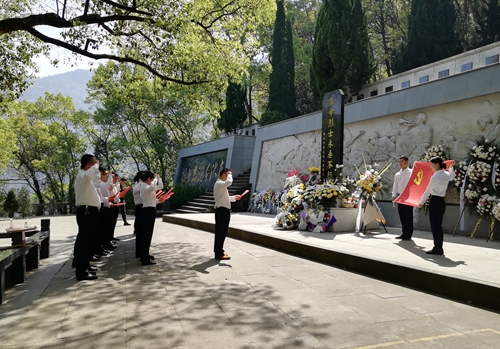 九峰烈士陵園始建于1956年,埋葬著20世紀(jì)50年代為國(guó)捐軀的120余位革命先烈。墓區(qū)內(nèi)青松翠柏環(huán)繞,墓前豎有一座“革命烈士永垂不朽”石碑。上午10時(shí)許,祭掃儀式開(kāi)始,全體人員懷著無(wú)比崇敬的心情向革命先烈鞠躬默哀,緊接著依次走到紀(jì)念碑前敬獻(xiàn)鮮花,表達(dá)對(duì)革命先驅(qū)的悼念與緬懷之情。在紀(jì)念碑前,全體黨員重溫入黨誓詞“我志愿加入中國(guó)共產(chǎn)黨,擁護(hù)黨的綱領(lǐng),遵守黨的章程......”