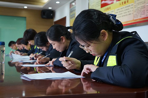 圖為筆試現(xiàn)場 比賽分筆試和現(xiàn)場問答兩部分,內(nèi)容涉及收費(fèi)政策、業(yè)務(wù)知識、特情處理、內(nèi)控管理制度。筆試試題分成6份,參考人員隨機(jī)選題,各班組分批閉卷測試,最后取班組平均分進(jìn)行排名?,F(xiàn)場問答由必答題、搶答題、場外題等多個(gè)部分組成,采用累積計(jì)分、搶錯(cuò)答錯(cuò)扣分方式進(jìn)行。各組以班組為單位每班派出3名選手,分成四組,其他班組人員則參加場外搶答。 “開具高速公路電子發(fā)票可下載“票根”APP或登錄票根網(wǎng)的網(wǎng)址是?” “車道移動(dòng)支付掃碼設(shè)備連接異常,導(dǎo)致無法支付,需要做哪些?”