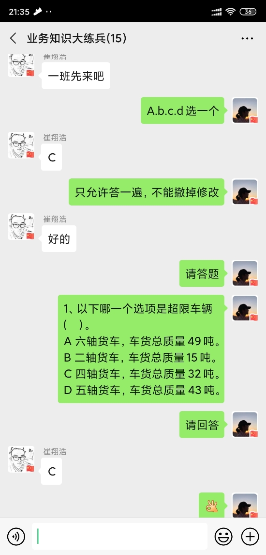本次業(yè)務知識大練兵活動根據(jù)取消省界收費站后收費政策及最新ETC綠農(nóng)車等業(yè)務內(nèi)容,包括必答題和搶答題,每班同等數(shù)量必答題,只允許單次有效答案;搶答題按回答正確順序取最快一名,計入個人分數(shù)及班組總分,最后計分多者為勝。