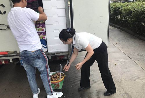 一個(gè)個(gè)李子雖小,卻很調(diào)皮。有的滾到了欄桿前,有的溜到了車道的狹縫里,有的甚至逃到了車底下,收費(fèi)員鄭維見狀,立馬彎腰撿李子,又迅速跑到欄桿前,很靈活地抓起了好幾個(gè)李子。狹縫里都是沖洗車道留下來的臟水,鄭維又毫不猶豫地將手伸向臟水里撿李子,再拿到水龍頭前沖洗一番后放回到司機(jī)的籃子里。一來一回好幾趟,原本平日里就怕熱的鄭維早已滿身大汗,此時(shí)她卻全然不顧。