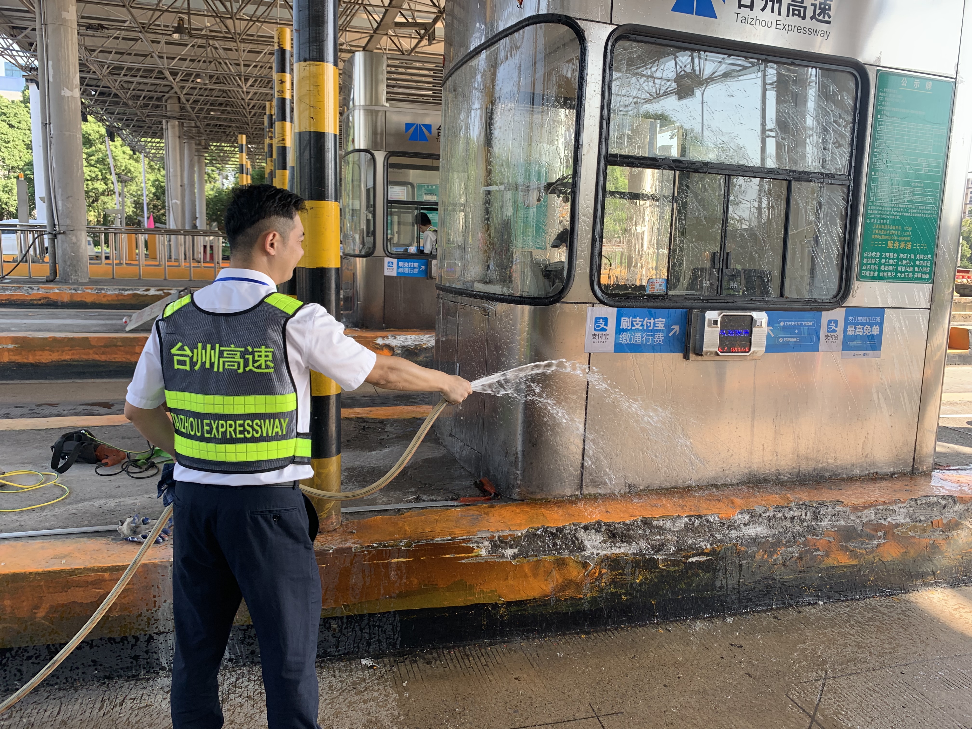 圖為工作人員打掃車道衛(wèi)生 此次環(huán)境衛(wèi)生大掃除本著徹底清理、不留死角的原則,以班組為單位,細(xì)分責(zé)任區(qū),明確保潔要求,限時(shí)清理,全所員工充分發(fā)揚(yáng)不怕苦、不怕累的精神,重點(diǎn)對(duì)收費(fèi)站內(nèi)外廣場(chǎng)、車道、崗?fù)?、島頭、邊溝、標(biāo)志標(biāo)牌等區(qū)域及設(shè)施設(shè)備進(jìn)行了一次深度清潔。