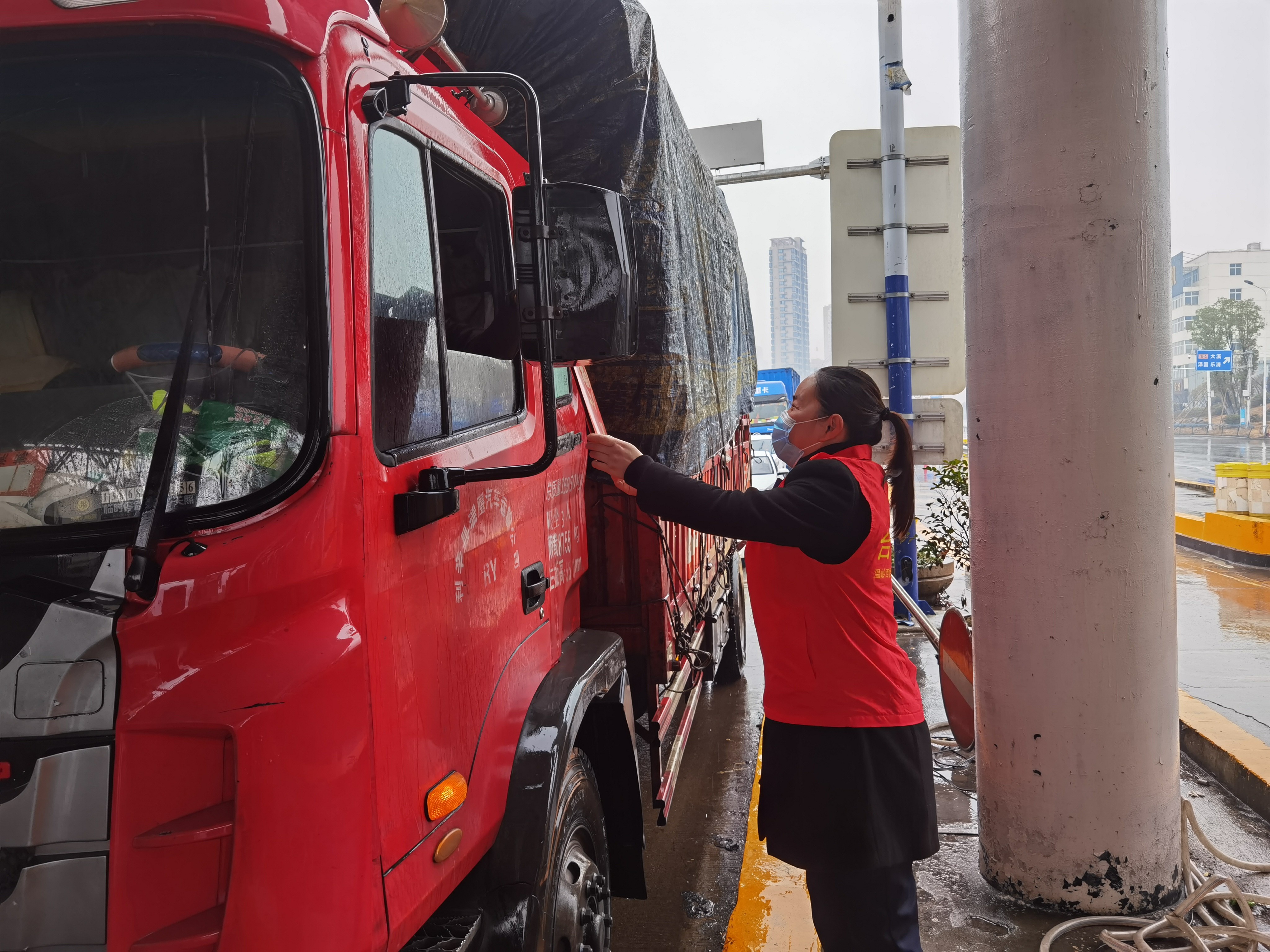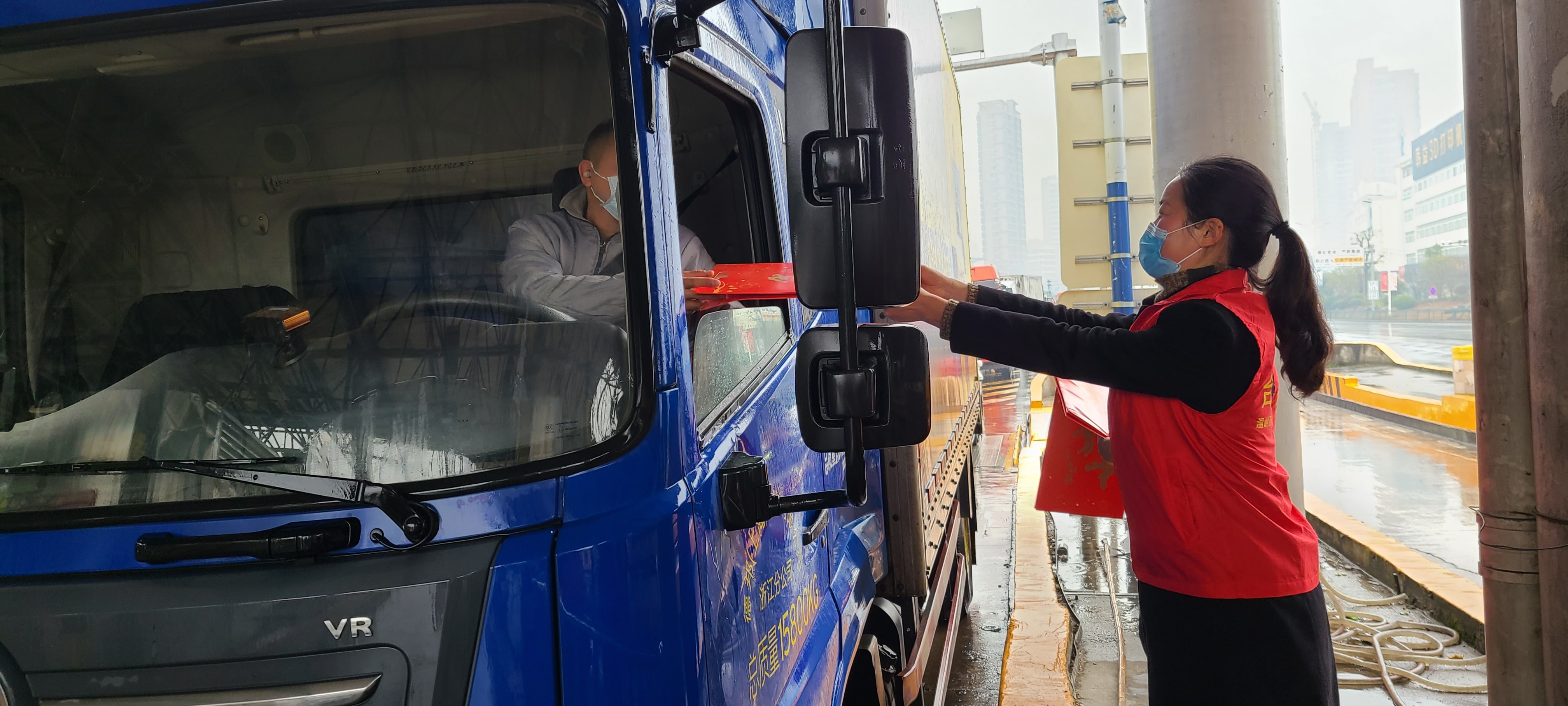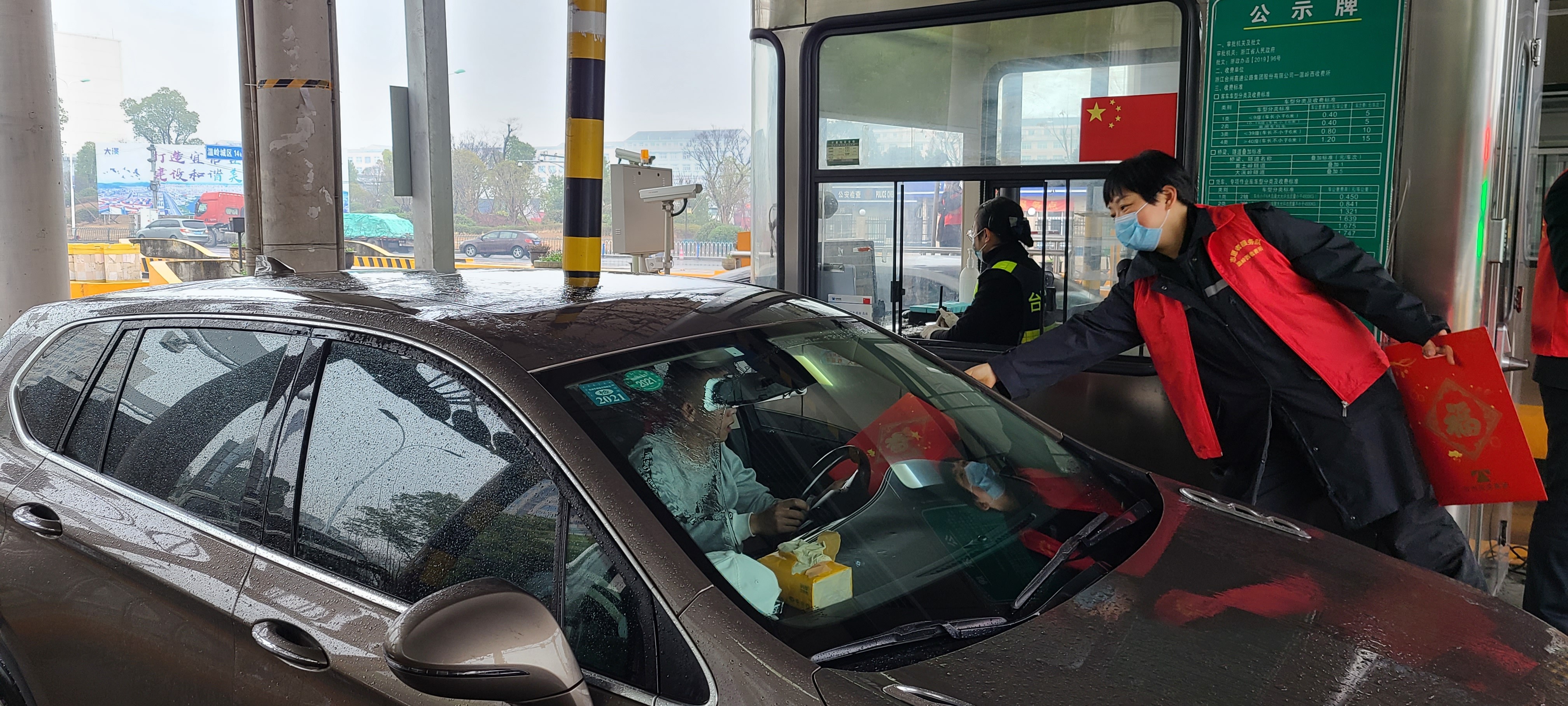 “師傅,新年快樂!”一句句響亮的新春祝福在溫嶺西收費站上空回繞。