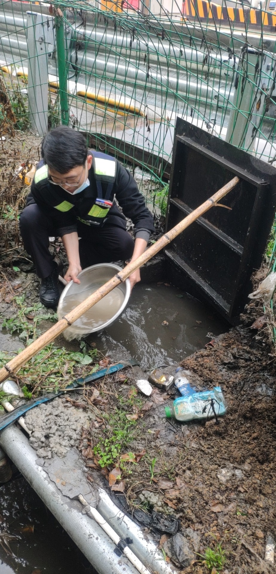 找出原因后,鄭星趕忙跑到所里取來(lái)一個(gè)水盆和一根木桿子。他用木桿支起排水坑上的蓋板,將坑里的積水一盆一盆地舀到旁邊的排水溝里。引導(dǎo)完車輛的林華平也過(guò)來(lái)協(xié)助鄭星。雖然此時(shí)外面下著雨,但他們?nèi)粵](méi)顧上,只盼著舀水這個(gè)措施能夠有效,11號(hào)車道能夠早點(diǎn)恢復(fù)使用,進(jìn)口秩序能夠早點(diǎn)恢復(fù)正常。 最后在鄭星和林華平的冒雨搶修下,排水坑里的水位總算有所下降,11號(hào)車道在關(guān)閉二十多分鐘后終于恢復(fù)使用,進(jìn)口車輛也恢復(fù)暢通。 因地磅傳感器長(zhǎng)期被雨水浸泡,可能還存在一些潛在問(wèn)題。再者,排水坑里的水位雖有所下降,單憑人力實(shí)在無(wú)法在短時(shí)間內(nèi)排掉剩余積水??紤]到這些問(wèn)題,班長(zhǎng)在搶修過(guò)后又將情況匯報(bào)給了維養(yǎng)中心,維修人員后序針對(duì)地磅問(wèn)題進(jìn)一步展開(kāi)排查和維修工作。 趙育辰