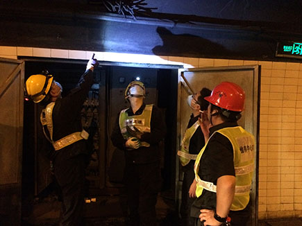 圖為工作人員更換滅火器