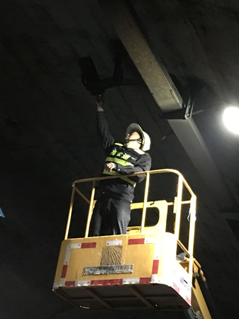 圖為黃土嶺執(zhí)勤隊員在清潔燈具和攝像鏡頭