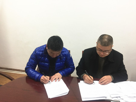 圖為所負責(zé)人與班隊長簽訂安全責(zé)任書