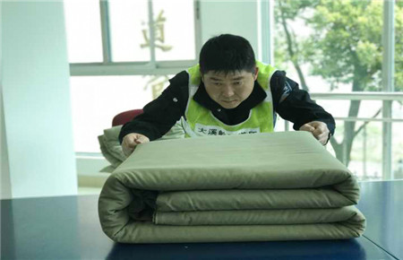 大溪嶺隧道所開展了內(nèi)務(wù)整治疊被競(jìng)賽。比賽要求是在規(guī)定的5分鐘時(shí)間內(nèi)將被子壓平壓實(shí),捏出被子的棱角,疊成形。隨著裁判員的一聲令下,隊(duì)員們立馬進(jìn)入狀態(tài),迅速將被子展開,對(duì)折,壓平,切槽,起角……一步一步地整理,時(shí)間一分一秒地過去,他們鎮(zhèn)定自若,嫻熟地動(dòng)作,熟練的技巧,將散亂的被子變成方方正正的“豆腐塊”。有些隊(duì)員甚至用了二三分鐘就疊好了。內(nèi)務(wù)整治包括疊被都是隧道所正規(guī)化整治的一部分內(nèi)容,長期堅(jiān)持的良好習(xí)慣讓員工養(yǎng)成了嚴(yán)謹(jǐn)?shù)纳钭黠L(fēng),保持了宿舍內(nèi)務(wù)衛(wèi)生的整齊劃一。
