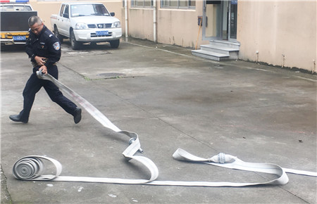 此次訓(xùn)練以計(jì)時(shí)比賽的形式進(jìn)行,執(zhí)勤隊(duì)員分組展開模擬演練,每組兩次機(jī)會(huì),取平均分記入考核。參練人員個(gè)個(gè)激情高漲,積極投入,演習(xí)場(chǎng)面熱鬧非凡。每組隊(duì)員在第一輪比賽后都抓緊互相探討動(dòng)作要領(lǐng)和水帶掐口的連接方法等,確保第二局能夠更準(zhǔn)確、更迅速地完成連接。