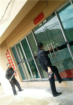 圖為當(dāng)值班組隊員擦拭站所玻璃門