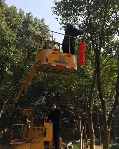 圖為黃土嶺隧道所員工合影 “往左往左,站臺再下降一點。”金先華麻利地操作著登高車,“爬樹高手”金美忠自然地肩負起了懸掛燈籠的任務(wù),而個子高高的廖科則負責(zé)遞燈籠,其它人員有的負責(zé)將燈籠系好鐵絲,有的負責(zé)扛梯子,有的則不時地在遠點兒的位置仔細看燈籠掛得正不正, 兩個燈籠高度是否一致,對聯(lián)是否對齊等等。大家有說有笑,忙得不亦樂乎! 不一會兒工夫,喜慶的春聯(lián)貼起來,紅紅的燈籠串掛起,管理所員工在一片喜氣的歡樂氛圍中共同期待著的新年的到來! 林 玲