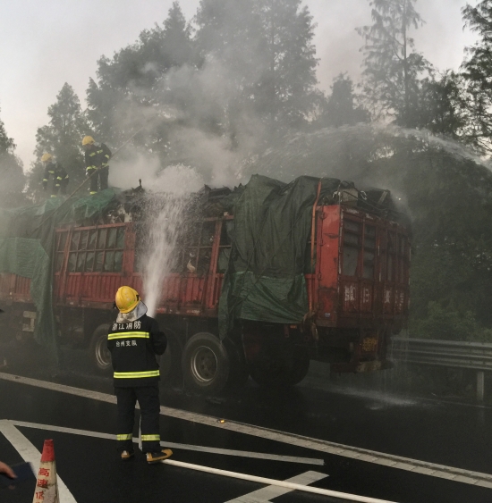 高速貨車起火 多部門應(yīng)急聯(lián)動(dòng)除隱患 9月14日17:52,甬臺(tái)溫高速黃土嶺隧道出口寧向1638米處,一輛滿載廢舊電器物品的貨車在高速上突然起火。
