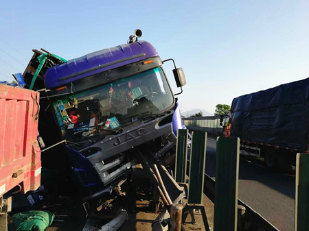 現(xiàn)場(chǎng),事故車輛占據(jù)整個(gè)超車道和半個(gè)主車道,因此造成后方嚴(yán)重堵車。施救中心在接到報(bào)警后迅速出動(dòng),不僅配合警車在現(xiàn)場(chǎng)預(yù)警,而且想辦法盡快將事故車輛拖離車道,以免造成二次事故。隨后,養(yǎng)護(hù)部門到達(dá)現(xiàn)場(chǎng)清理。經(jīng)過(guò)5個(gè)多小時(shí)奮戰(zhàn),40多人的合力處理下,道路終于恢復(fù)了暢通。