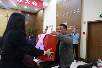 圖為總監(jiān)票人項義超在宣讀投票表決結(jié)果