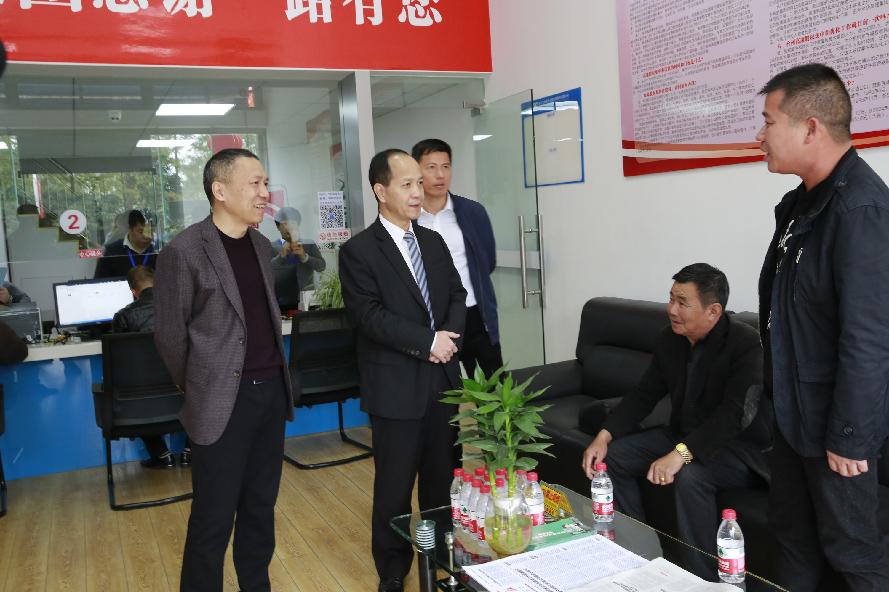 11月28日上午,副市長張加波到臺州高速股權椒江收購點調(diào)研股權集中收購工作。臺州高速集團領導班子成員、椒江區(qū)常務副區(qū)長王智承等陪同。
