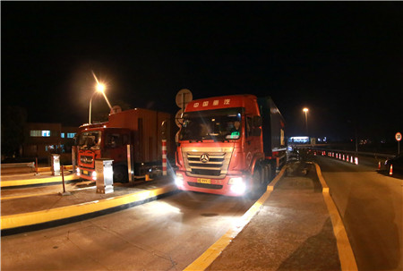 臺州南、溫嶺西收費所,分流9點開始,由于夜間通行貨車居多,每輛需計重收費,且夾雜綠農(nóng)車,情況復(fù)雜,分流1個小時后出口車道已排成車燈長龍,壓力巨大?!奥房趨f(xié)警一定要守住第一道防線,不能讓任何車輛進(jìn)入!”富有經(jīng)驗的所長王益民已在車道上與交通協(xié)管員一起指揮疏導(dǎo)交通了。從晚上10點到凌晨6點,持續(xù)奮戰(zhàn)8個小時,在有限的具有稱重能力車道的情況下,臺州南、溫嶺西共完成了5千多輛車的收費工作,流量相比平時增加一倍。
