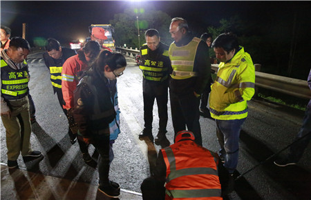 路面養(yǎng)護(hù)施工已經(jīng)第五天,當(dāng)晚計(jì)劃完成K1655+897-K1656+943之間860米的路段罩面,銑刨6個(gè)橋頭。工人們每天夜出晝伏,持續(xù)的徹夜工作,違反生理規(guī)律、勞動(dòng)強(qiáng)度較大,體力精神上都比較辛苦。盡管張建平在此期間一直參加黨校學(xué)習(xí),但還是百忙之中特地抽時(shí)間到施工現(xiàn)場(chǎng)為工作人員加油打氣。