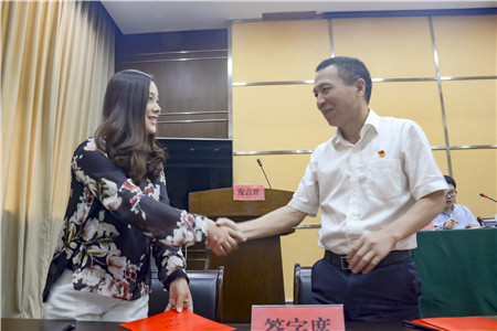 圖為市國(guó)資委黨工委委員、副主任姜穎講話
