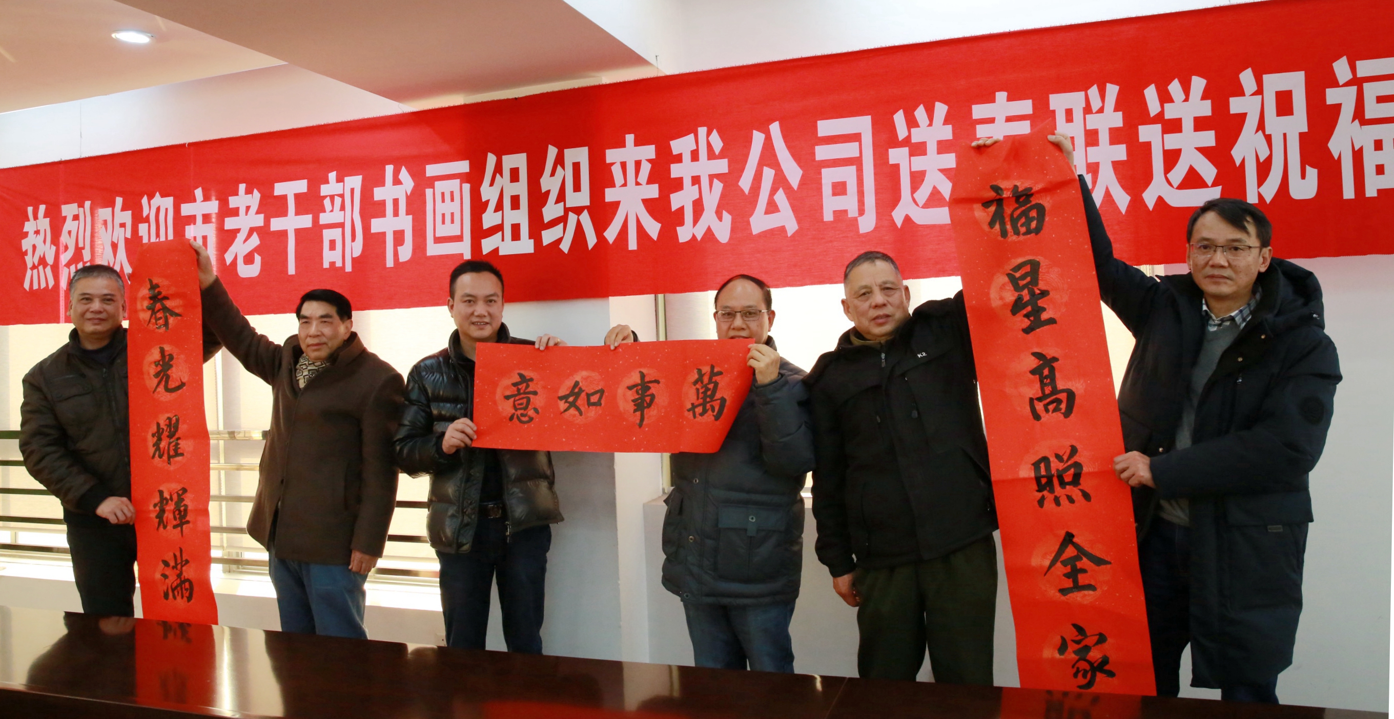 1月17日下午,市老年書畫研究會(huì)會(huì)長(zhǎng)楊通河,市直機(jī)關(guān)老干部書畫協(xié)會(huì)領(lǐng)導(dǎo)施巨日、陳孔梅一行來公司送春聯(lián)送祝福,感謝公司對(duì)研究會(huì)的支持和關(guān)愛,祝愿公司在新的一年里紅紅火火,萬事如意,經(jīng)營發(fā)展越來越好。
