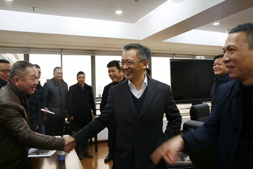 圖為臺州市副市長鄭敏強(qiáng)與集團(tuán)中層正職親切握手