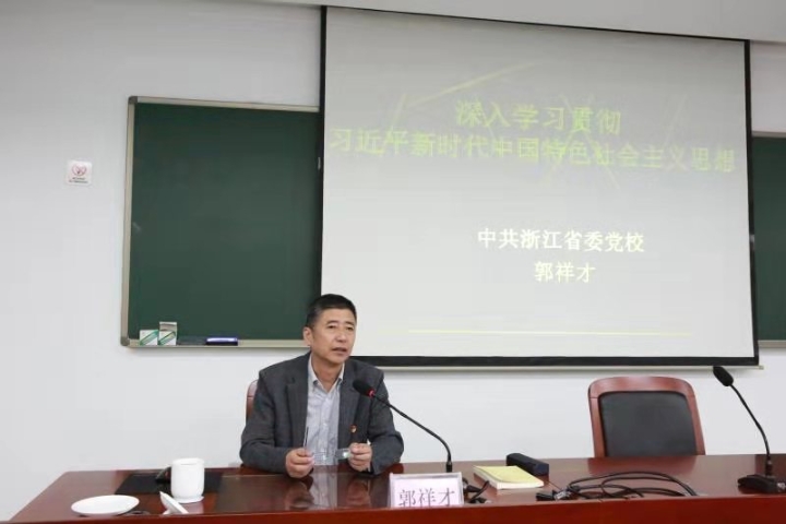 圖為省委黨校哲學(xué)教研部原主任、教授郭祥才以《習(xí)近平新時代中國特色社會主義思想》為題授課