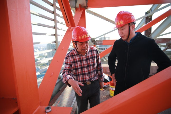 11月15日下午,集團安全總監(jiān)項同富在辦公室、房產(chǎn)公司相關(guān)人員的陪同下,到天和大廈樓頂鋼架除銹施工現(xiàn)場檢查施工進展和安全工作。
