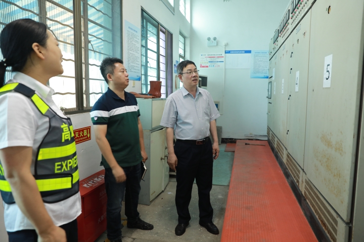 圖為陳文波檢查發(fā)電機房 發(fā)電機房是所里的安全重地。檢查完食堂的安全后,陳文波又來到收費站的發(fā)電機房進行查看。“發(fā)電機房的消防設施有沒有定期巡查?機房設備是如何保養(yǎng)的?”他不時向現(xiàn)場人員詢問。由于發(fā)電機房地基較低,一到雨季雨水可能會漫上來??紤]到這一情況他囑咐在場的人員,要定期做好發(fā)電機房的下水管道的疏通,確保在臺風雨季來臨時能夠及時排水。