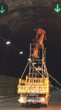圖為施工人員在隧道內(nèi)拆除中排燈 塘嶺隧道自建成通車到現(xiàn)在已近20年,隧道兩頭中間位置,一排用來加強(qiáng)照明高壓納燈為2011年機(jī)電改造工程的遺留物,屬報廢燈具。如今,由于上方用于固定納燈鐵架已出現(xiàn)不同程度腐爛,有些納燈已出現(xiàn)晃動現(xiàn)象,一旦斷落,勢必給高速行車埋下安全隱患。集團(tuán)公司領(lǐng)導(dǎo)得知這一情況后高度重視,當(dāng)即委派工程部維養(yǎng)中心組織力量,負(fù)責(zé)聯(lián)系拆除。