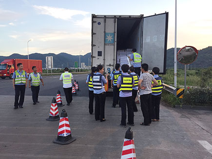 圖為臺(tái)金高速人員檢查車(chē)輛現(xiàn)場(chǎng)