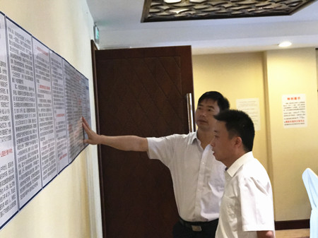 圖為集團(tuán)副總經(jīng)理陳保衛(wèi)正在檢查收購點(diǎn)宣傳資料