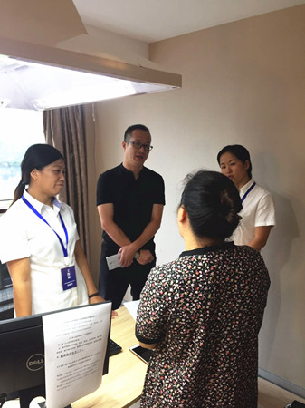 圖為集團(tuán)董事會(huì)秘書王雍在天臺(tái)駐點(diǎn)指導(dǎo)