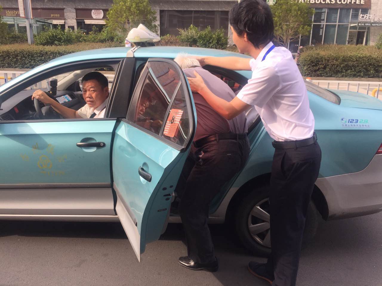 圖為椒江收購點(diǎn)符俊杰扶老人上出租車