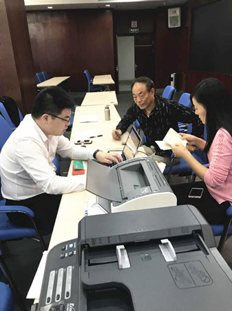 但是,在工作的時(shí)候,小李讓我們見(jiàn)識(shí)到了“騰飛”的效果。流動(dòng)點(diǎn)只設(shè)一臺(tái)筆記本電腦,線(xiàn)上操作都?xì)w他,在大溪鎮(zhèn)政府,來(lái)的股東有百十號(hào),流動(dòng)小組包括駕駛員何杰靚迅速開(kāi)展了流水作業(yè)。此時(shí)此刻,小李那一雙肥白的大手在小巧的鍵盤(pán)上十指翻飛,靈活敏捷,操作如行云流水,打印機(jī)刷刷地響,不停飛出一份份協(xié)議,傳到下一個(gè)工作人員這里。這才知道,每一個(gè)人的名字都是名副其實(shí)的,“騰飛”的含義是在這里體現(xiàn)的呀。