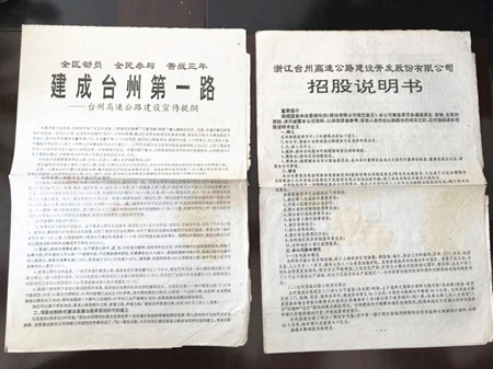 臨近中午的時候,來了一位面目普通的中年人,他準備了他父親和母親的身份證還有銀行卡,工作人員以為是兩筆代辦業(yè)務,原來是查詢股東紀錄的,查詢的股東名字叫婁巖奶,因為巖奶兩字比較少見,我記得上午的時候辦理過一個叫巖奶的股東的收購業(yè)務,就非常好奇的詢問,這時候管理處的工作人員解釋,他們這里有兩個叫巖奶的人,一個是婁巖奶,一個是宋巖奶,經(jīng)過查詢卻沒有找到婁巖奶的股東信息。據(jù)管理處工作人員回憶,1993年婁巖奶當時還未退休,應該購買了股票。經(jīng)過查詢管理處的退休人員清冊,發(fā)現(xiàn)婁巖奶于1994年12月才退休,根據(jù)初步判斷估計該股東可能當時出于各種原因并沒有購買股票。為了慎重起見,于是工作人員請求管理處把股票購買的原始檔案調閱出來查看,翻開斑駁的原始記錄,一個一個仔細查詢股東姓名,但是很遺憾并沒有該股東的信息,工作人員肯定地回復了股東。雖然讓婁巖奶的兒子失望了,但是工作人員卻在斑駁的檔案中看到了非常珍貴的歷史檔案:《全區(qū)動員、全民參與、苦戰(zhàn)三年、建成臺州第一路—臺州高速公路建設宣傳提綱》、《浙江臺州高速公路建設開發(fā)股份有限公司招股說明書》,看著這些檔案,眼睛有些濕潤,仿佛又回到了那個波瀾壯闊的年代,也為高速集團曾經(jīng)的創(chuàng)舉而驕傲。