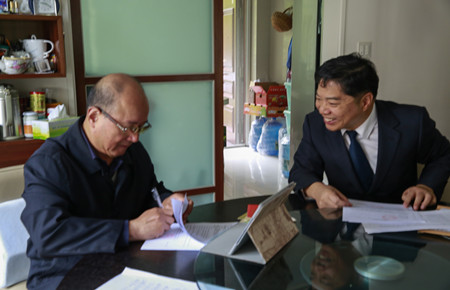 11月14日上午,集團(tuán)總經(jīng)理助理項(xiàng)同富繼續(xù)上門服務(wù),為離退休老干部胡宣義夫婦辦理股權(quán)轉(zhuǎn)讓手續(xù)。