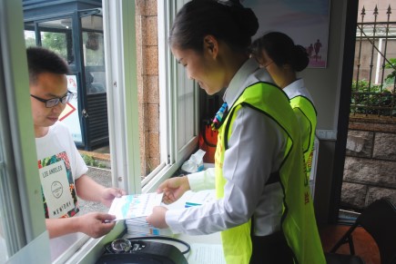 在位于黃巖區(qū)自力電影院對面的志愿服務(wù)亭里,臺州收費(fèi)所志愿者服務(wù)隊(duì)的成員們,一邊學(xué)習(xí)如何操作充氣設(shè)備,一邊熟悉服務(wù)內(nèi)容,并向市民發(fā)放《臺州市市民文明手冊》等。對于自己的志愿者服務(wù)工作,大家一臉自豪。就在隊(duì)員們分頭忙碌時(shí),來了兩位外地口音的路人,詢問附近有沒有網(wǎng)吧。大家熱心指路,但這兩人還是一臉茫然,志愿者盧蒙莎就熱心地陪著兩人,穿過馬路,在一個(gè)巷子里的找到網(wǎng)吧。志愿者金愷,今天早班一下班,顧不得休息,就急著趕到了服務(wù)亭,加入志愿者服務(wù)的隊(duì)伍。
