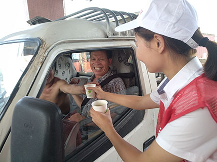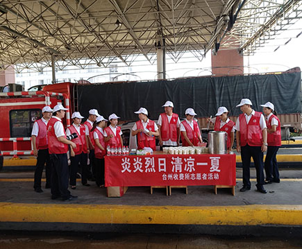 圖為志愿者合影 志愿者們兵分三路,一路在外廣場對滯留車輛進(jìn)行文明勸導(dǎo),一路拿著垃圾袋和撿拾工具沿收費區(qū)域收集垃圾,另一路則在安全島上向過往的司乘人員宣傳夏日行車安全知識,同時提供礦泉水、冰鎮(zhèn)綠豆湯,發(fā)放清涼油、風(fēng)油精等防暑降溫用品,不僅為司乘人員提供熱情周到的服務(wù),還讓過往司乘人員在炎炎夏日真切感受到一絲清涼和一份關(guān)心。 該所通過開展一系列的志愿活動,促進(jìn)了收費員與司乘人員之間的溝通交流,拉近了彼此之間的距離,贏得了過往司乘人員的好評,塑造了良好的窗口形象,為臺州市創(chuàng)建全國文明城市貢獻(xiàn)力量。 鄭瑛芝