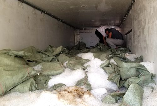 李貴陽(yáng)打開(kāi)車輛后廂門,迎面撲來(lái)一陣?yán)滹L(fēng),一眼望去車廂里面全部是一袋袋的花蛤,上面還壓著袋裝的冰塊和零碎的碎冰,車廂內(nèi)部看不清楚。憑借多年的工作經(jīng)驗(yàn)和認(rèn)真負(fù)責(zé)的工作態(tài)度,李貴陽(yáng)二話沒(méi)說(shuō),直接爬上濕滑的車廂,踏過(guò)冰袋和碎冰,深入到車廂里面去檢查,把冰袋掀開(kāi)后,結(jié)果發(fā)現(xiàn)下面全部是空桶。原來(lái)這樣做既可以增加貨物面積也可以使重量加重,從而達(dá)到綠農(nóng)政策的免費(fèi)通行要求。