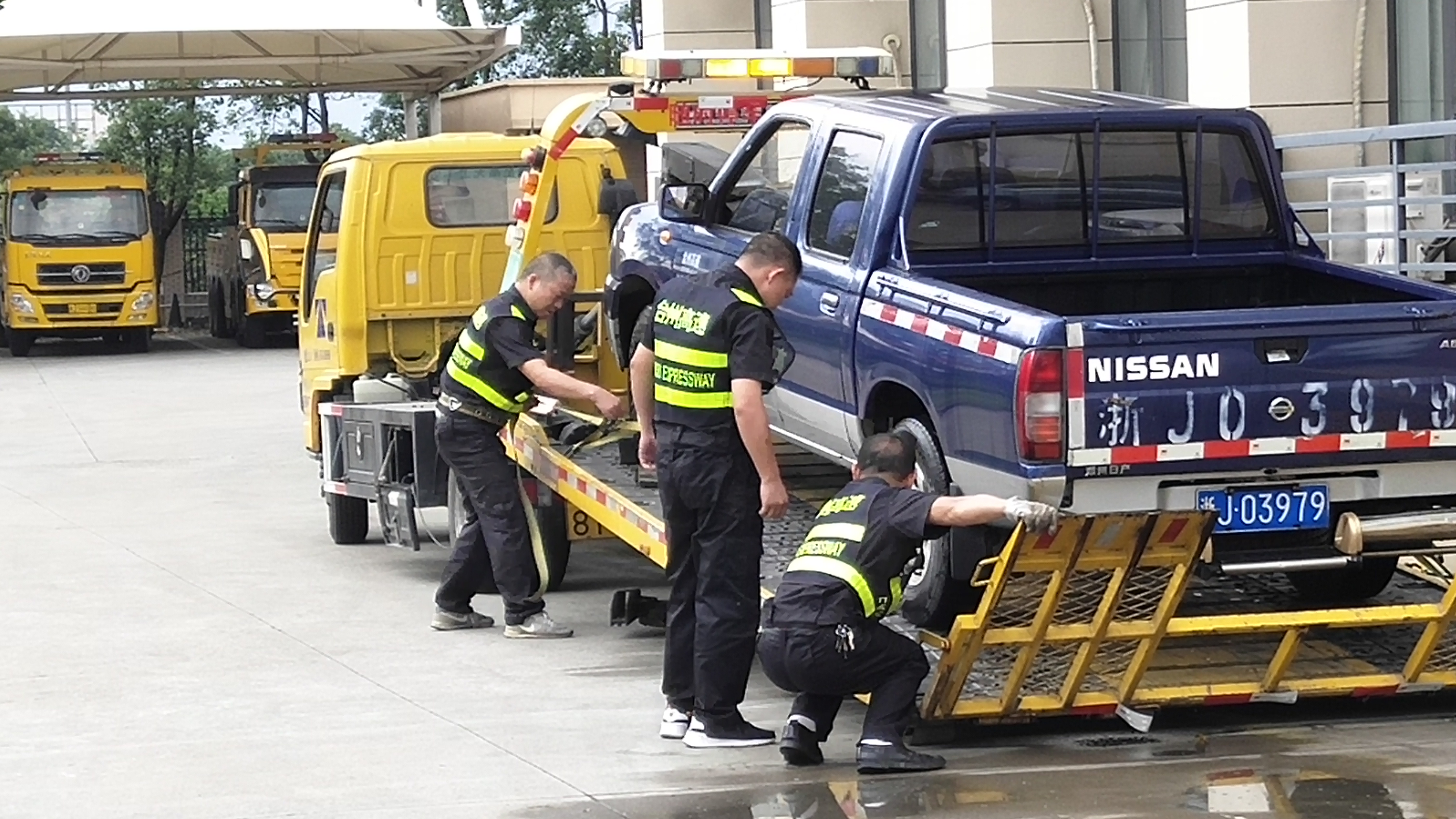此次演練的虛擬情境為隧道內(nèi)發(fā)生車輛起火事件并造成路產(chǎn)損失而開展的救援處置。施救中心在接到指令后,兩人一組,分成兩組,分別駕駛施救車輛和勘查車輛出警奔赴事故現(xiàn)場。