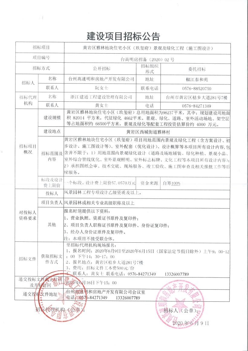 黃巖區(qū)雅林地塊住宅小區(qū)(玖璽府)景觀及綠化工程(施工圖設(shè)計(jì))招標(biāo)公告