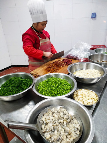 臺州的元宵節(jié)是從正月十四開始的。十四吃咸羹、十五吃甜的山粉糊。下午兩點(diǎn),臺州所的食堂大姐們就開始忙活了。 早在前幾天,來自臨海的食堂大姐利花,就開始為臺州所的元宵節(jié)準(zhǔn)備食材清單。在她的家鄉(xiāng)四岔,咸的糟羹里是要放海蠣的,她說一到正月十四,滿街都會有剛從牡蠣殼里現(xiàn)挑出來閃著新鮮青色的海蠣肉賣,但在黃巖,找遍菜場,只有冰凍的泛著白光的海蠣肉,也不是每天都有賣,有時(shí)還要靠運(yùn)氣才能買到。利花有些無奈,她想,都是離海不遠(yuǎn)的地方,為什么就沒有新鮮的海蠣?她也許不知道,在黃巖一帶,大家還是喜歡吃甜的山粉糊,所以不需要海蠣。