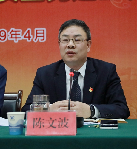 圖為集團(tuán)領(lǐng)導(dǎo)陳文波在會上發(fā)言
